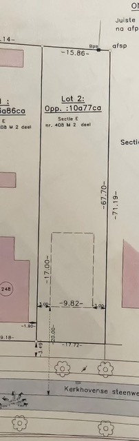 Het perceel heeft een straatbreedte van 17,72 meter en een diepte van 67,70 meter, wat zorgt voor een ruimtelijk gevoel en diverse bouwmogelijkheden. De toegelaten bouwbreedte bedraagt 9,82 meter. Op het gelijkvloers kan gebouwd worden tot 17 meter diep, op de verdieping tot 12 meter.