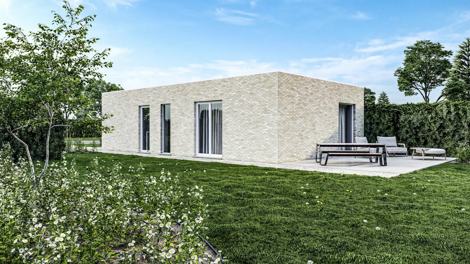 Deze woning kan volledig volgens de getoonde foto’s en plannen gebouwd worden. Maar zie ze eerder als vertrekpunt voor een vrijblijvend gesprek over jouw warm nest op maat.